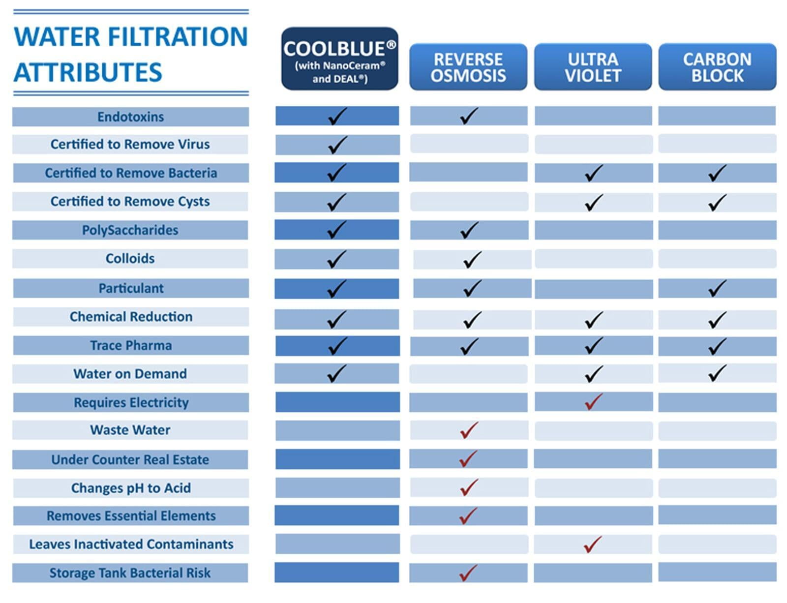 All the benefits of COOLBLUE® and then we add superior chemical and metal reduction capacity , and optional molecular hydrogen infusion technology and expanded arsenic removal technology!