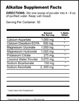 Alkalize counteracts overly acidic conditions in the body. It is an effective way to raise intracellular pH as an aid to boosting oxygen metabolism.