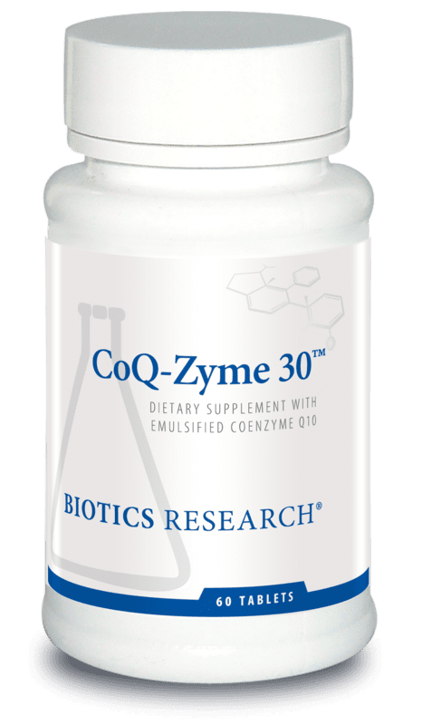 CoQ-Zyme 30™ supplies an emulsified form of Coenzyme Q10 (CoQ10) (ubiquinone). Since CoQ10 is an oil-soluble, vitamin-like substance, the emulsification assists in uptake and utilization. Published research has demonstrated that CoQ10 supplied by CoQ-Zyme 30 is significantly more bioavailable than other more common sources of CoQ10. This is especially important for those with malabsorption and/or maldigestion concerns, as CoQ10 plays a key role in energy production. Heart and skeletal muscles are particularly dependent on CoQ10, as are cells and tissues that are involved in immune function. Dose: One (1) tablet each day as a dietary supplement or as otherwise directed by a healthcare professional. KEEP OUT OF REACH OF CHILDREN.