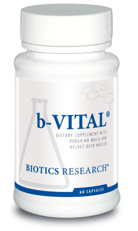 b-VITAL® is an all natural, patented formula, clinically demonstrated to augment testosterone levels in men. Testosterone plays a critical role in men's health, including cardiovascular health. Unfortunately, testosterone levels decline with age. b-Vital provides "A Treasure from the Andes", Peruvian Maca, used for centuries to restore balance and increase energy, combined with Velvet Deer Antler, harvested live (no need to destroy these awesome creatures) from American Elk. the many traditional uses of these adaptogenic compounds are due to their rich and diverse nutrient, chemical and phytochemical compositions. This statement has not been evaluated by the FDA. This product is not intended to diagnose, treat, cure, or prevent any disease. Patent #6,093,421. Catalog: Male Product Warnings: Not recommended for pregnant or lactating women, women with a history of breast cancer or other hormone related cancers. Not recommended in men with elevated PSA levels, with a history of prostate cancer, or in those testing for anabolic aids. KEEP OUT OF REACH OF CHILDREN. Dosage: One (1) capsule twice daily as a dietary supplement or as otherwise directed by a healthcare professional. Active Ingredients: Peruvian Maca (Lepidium meyenii) (root), Velvet deer antler (from living Elk). Other Ingredients: Gelatin and water.