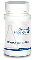 Neonatal Multi-Gland™ supplies a broad spectrum of organ and glandular concentrates. It includes neonatal spleen, heart, pancreas, kidney, brain, liver, adrenal, thymus, pituitary/hypothalamus complex, lung and intestinal glandulars. Since the early 1980's Biotics Research has been at the forefront of glandular production, reflecting its commitment to research and innovation. Glandulars from Biotics Research are prepared strictly from BSE-free countries, and collected under USDA inspection. The glandulars in the Neonatal Multi-Gland™ incorporate tissues from newborn calves, harvested specifically for Biotics Research, to ensure quality and to provide a reproducible source of bovine tissues. Tissues from newborn animals possess high anabolic activity, and have had minimal exposure to environmental stressors. Atrophy, fatty infiltration, tissue degradation, and the accumulation of oxidative waste products (lipofuscin) are not observed in tissues from newborn calves. The glandulars are prepared via treatment with mild solvents, and low temperatures; conditions known to preserve enzyme, protein and polypeptide factors. Dose: One (1) tablet each day as a dietary supplement or as otherwise directed by a healthcare professional. KEEP OUT OF REACH OF CHILDREN.