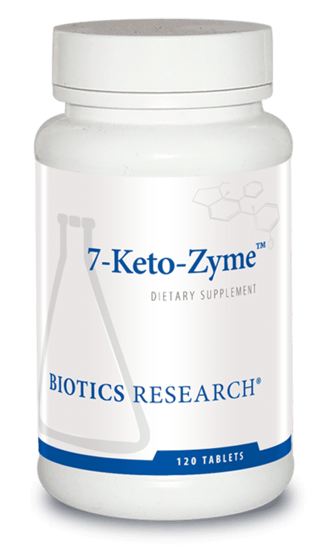 7-Keto-Zyme™ supplies 7-oxo-DHEA Acetate, combined with SOD and catalase, both important antioxidant enzymes.* 7-oxo-DHEA Acetate has demonstrated a thermogenic effect. Although it is a metabolite of DHEA, it differs in that it does not convert to androgens or estrogens (sex hormones). Dose: One (1) tablet each day as a dietary supplement or as otherwise directed by a healthcare professional. KEEP OUT OF REACH OF CHILDREN.