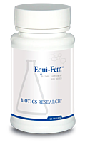 Equi-Fem™ supplies a comprehensive source of nutrients to support healthy female endocrine function. It includes vitamins, minerals, botanicals, and organ/glandular specific support, with known nutrient synergists. It may be recommended as a general female multi, as well as for those having menopausal and peri- menopausal symptoms, such as hot flashes.* Dose: Six (6) tablets each day as a dietary supplement or as otherwise directed by a healthcare professional. Accidental overdose of iron-containing products is a leading cause of poisoning in children under 6. Keep this product out of reach of children. In case of accidental overdose, call a doctor or poison control center immediately. Caution: Not recommended for pregnant or lactating women. KEEP OUT OF REACH OF CHILDREN.